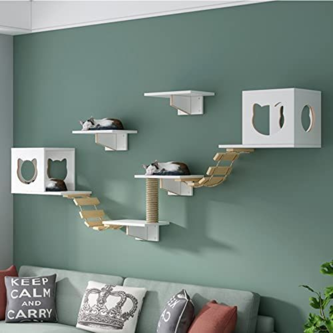 Convierte cualquier pared en un gimnasio elegante y funcional para tu gato. El Gym Bubble está diseñado con módulos de madera y rampas que estimulan el ejercicio, el descanso y la diversión. Su acabado blanco y detalles minimalistas lo hacen ideal para interiores modernos. Perfecto para gatos curiosos que aman las alturas y para humanos que valoran el diseño.