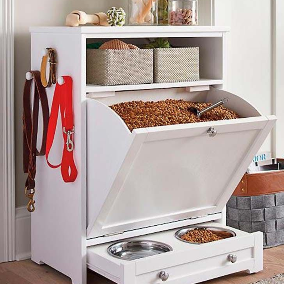 El Organizador Hank es la solución perfecta para mantener todo lo relacionado con tu peludito en un solo lugar. Este mueble multifuncional cuenta con un dispensador amplio para almacenar croquetas de forma hermética, asegurando frescura y comodidad al momento de servir. Además, incluye un cajón inferior con comederos de acero inoxidable integrados y espacio lateral para colgar correas y accesorios. Con un diseño práctico y elegante, se adapta a cualquier hogar, ofreciendo orden y estilo mientras cuidas a tu peludito.