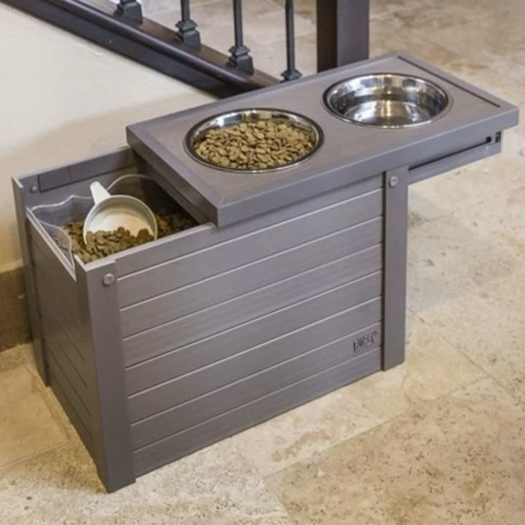 El Organizador Hazel es la solución perfecta para mantener el alimento de tu peludito siempre fresco, accesible y con estilo. Su diseño moderno combina un compartimento de almacenamiento amplio para croquetas con una tapa deslizable que incluye dos comederos de acero inoxidable. Práctico y elegante, convierte la hora de la comida en una experiencia ordenada, limpia y sofisticada. Ideal para dueños que buscan funcionalidad sin sacrificar estética en el hogar.
