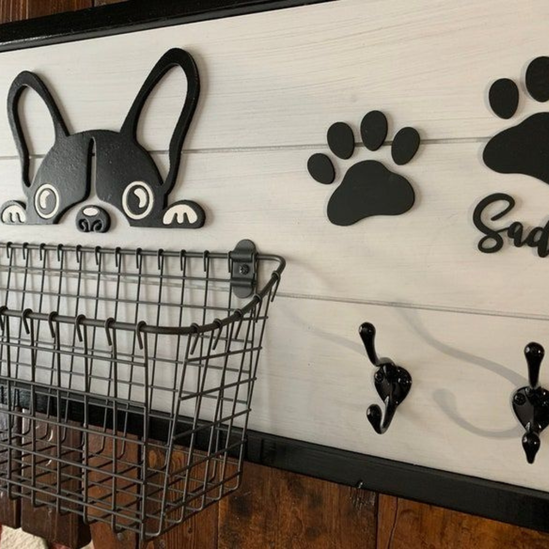 El Organizador Klaus combina funcionalidad y diseño divertido para mantener en orden los accesorios de tu peludito. Su estructura de madera decorada con un simpático motivo de perro y huellas en relieve crea un estilo único y encantador. Incluye ganchos metálicos resistentes para collares, correas o accesorios, y una canasta de alambre amplia que permite guardar juguetes, premios o bolsitas. Es perfecto para ubicarlo en la entrada de la casa o cerca de la zona de paseo, manteniendo todo al alcance de la mano y con un toque decorativo.