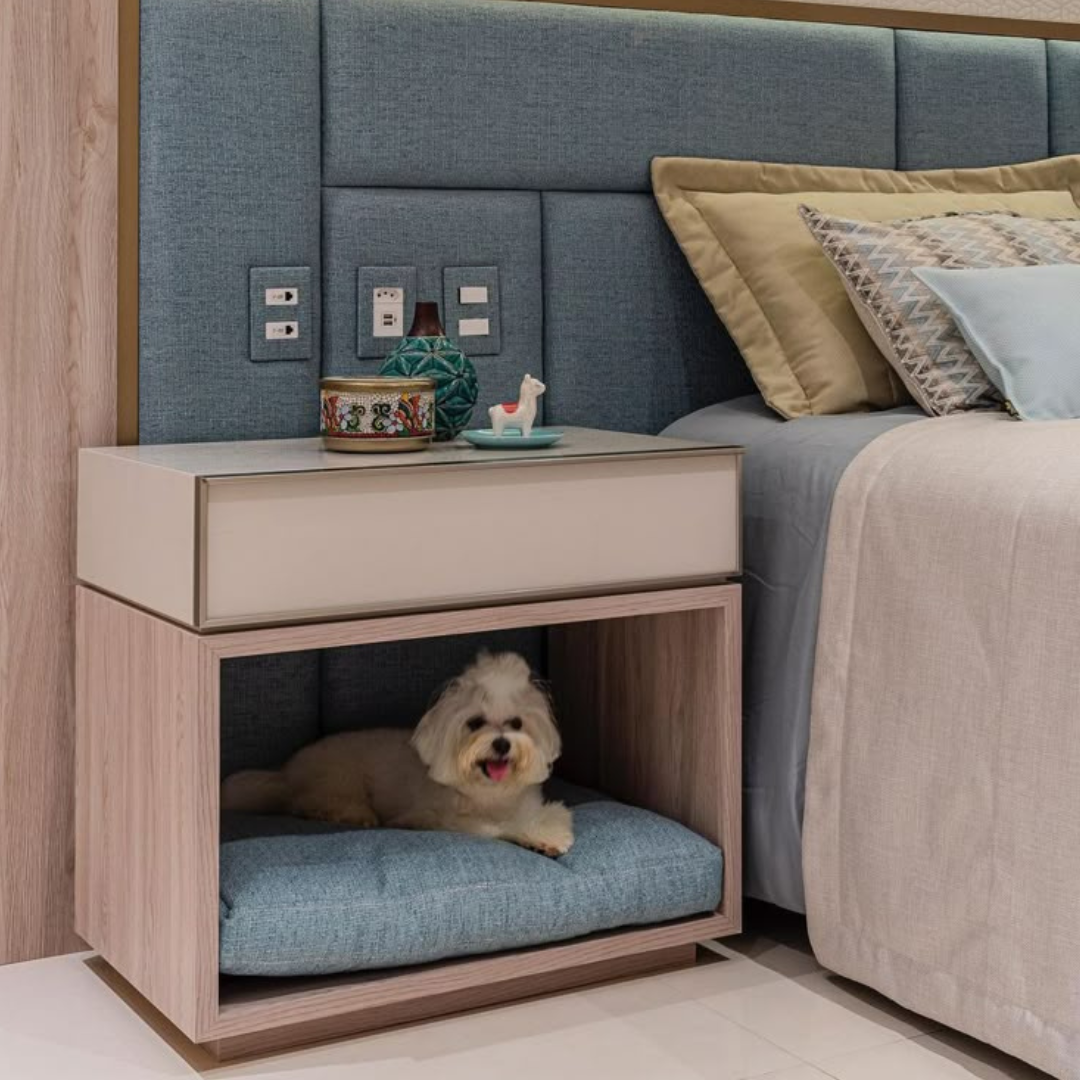 Comodidad que combina con tu estilo. El Velador Fluffy es perfecto para los que aman tener a sus peluditos cerca. Su diseño moderno se adapta a dormitorios elegantes, con un espacio inferior acolchonado ideal para perros pequeños o gatos, y una gaveta superior funcional para objetos personales.