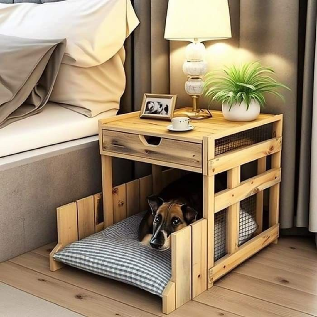 Donde la rusticidad se encuentra con el amor perruno. El Velador Foxy ofrece un espacio cómodo y seguro para tu mascota justo al lado de tu cama. Su diseño robusto de madera natural, combinado con una gaveta funcional y estructura ventilada, lo convierte en el compañero perfecto para dormitorios cálidos y acogedores.