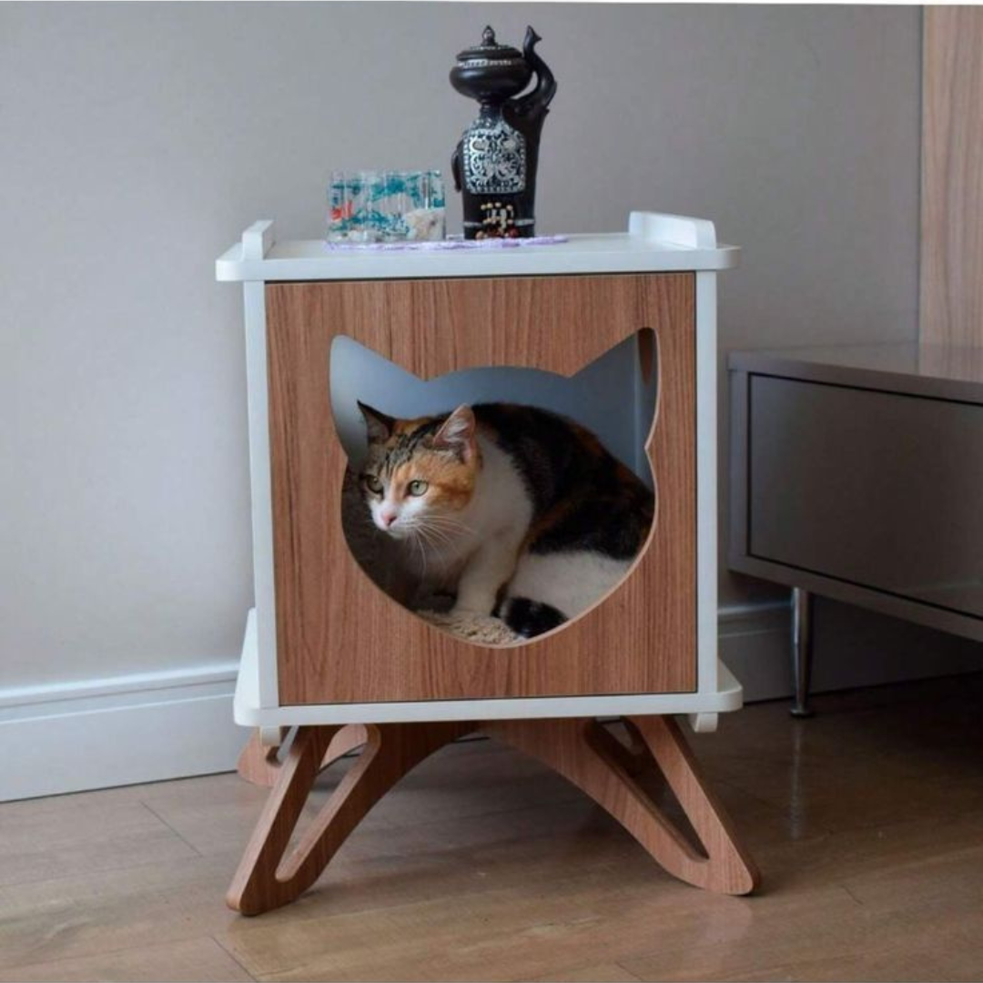 El Velador Gala es un mueble moderno y funcional diseñado especialmente para consentir a tu peludito sin perder la elegancia en tu hogar. Su diseño combina madera natural con un detalle frontal en forma de silueta de gato, que le da un estilo único y encantador. Ideal para gatos y perros pequeños que buscan un espacio acogedor y seguro. Además, su superficie superior es perfecta para colocar objetos decorativos, haciéndolo una pieza multifuncional para tu sala o dormitorio.